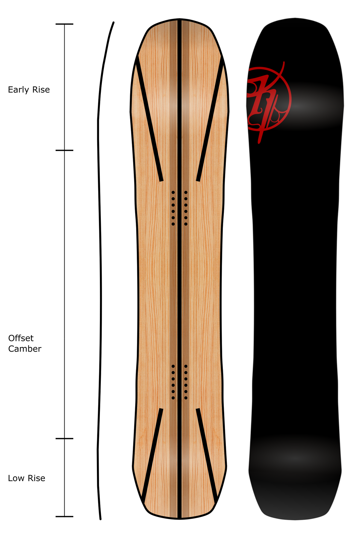 All our cores are vertically laminated, knot free, AAA Grade Poplar. Our cores are well balanced, and translate vibration evenly throughout each piece. While offering a very smooth ride, Poplar offers the responsiveness required in a high performance, premium snowboard.
